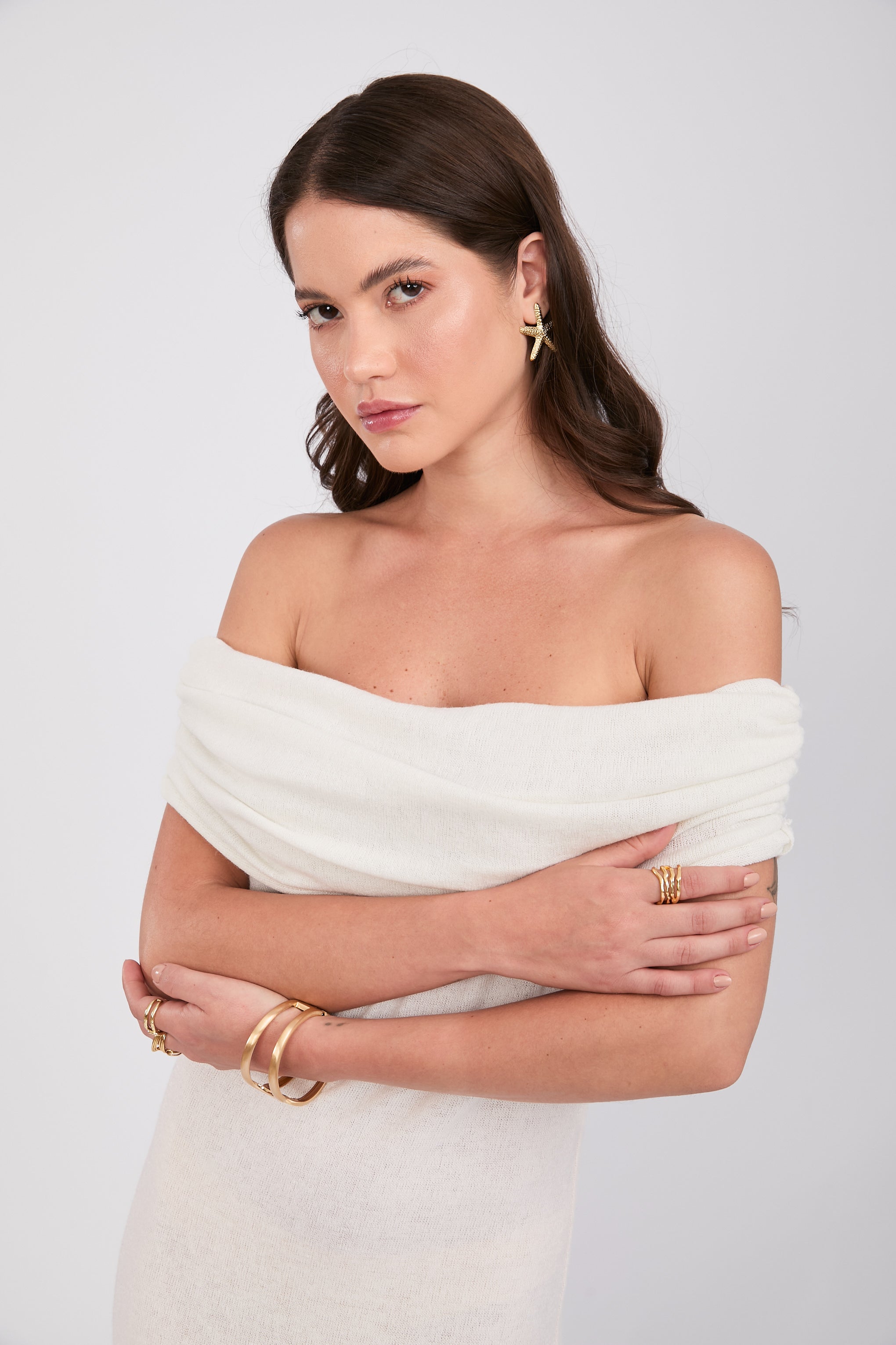 Vestido de punto estilo off shoulders